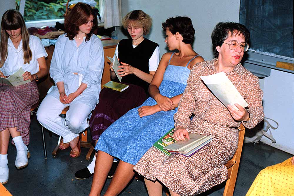 Klasse 11 a Frau de Medeiros beim Austeilen der Zeugnisse